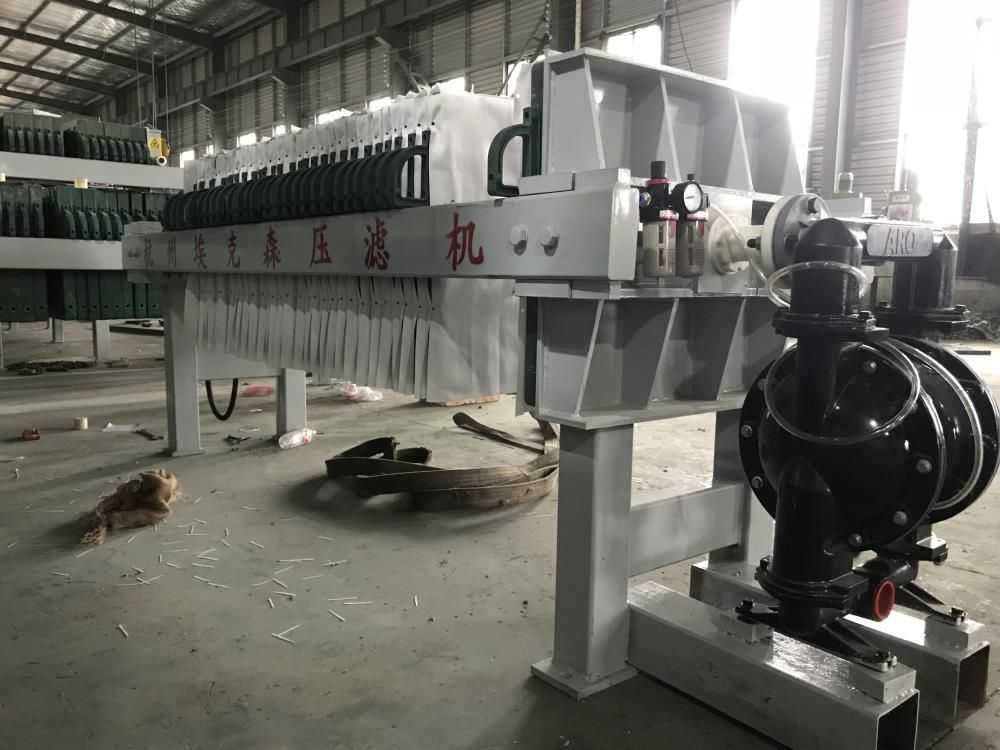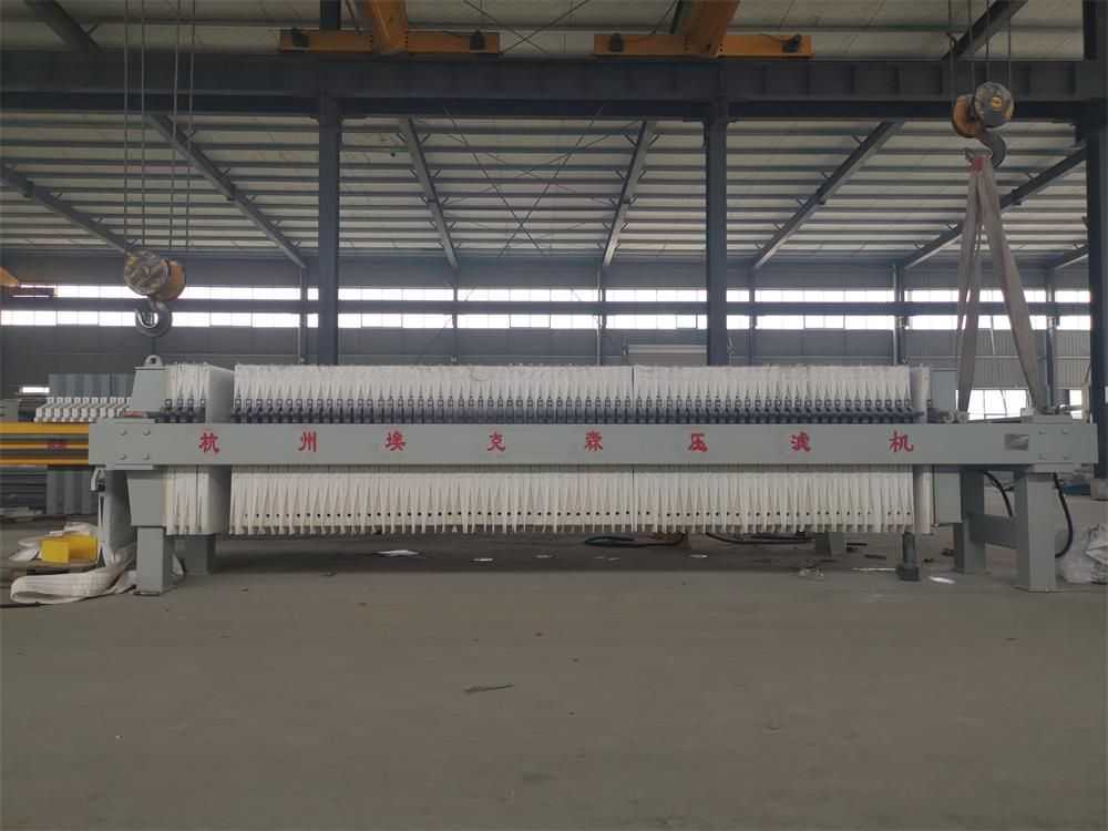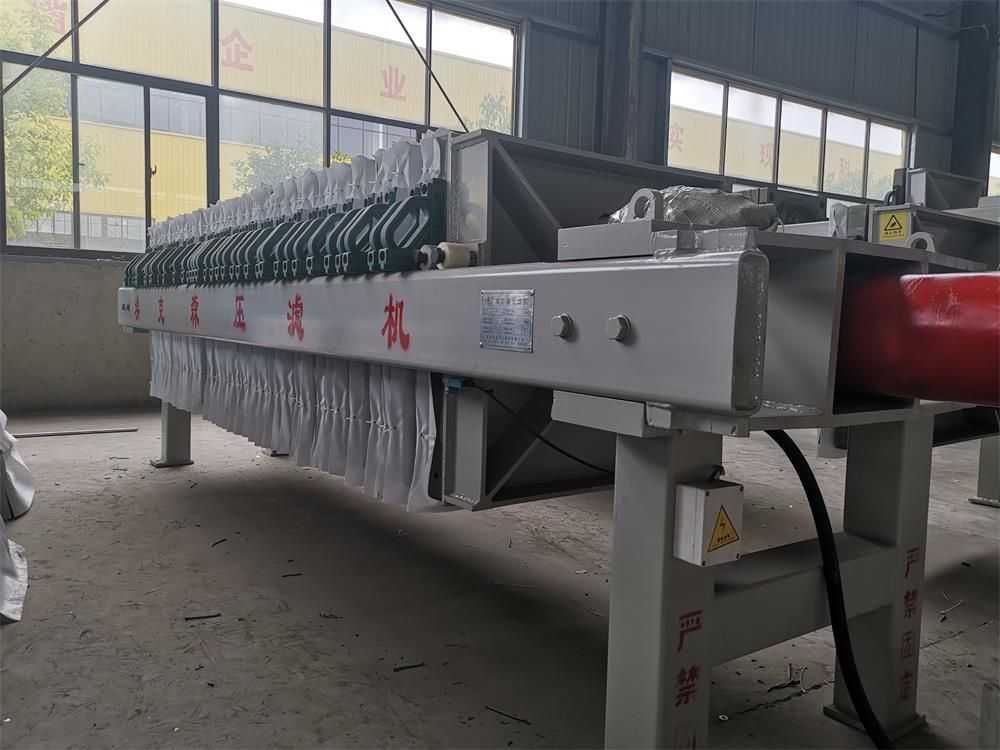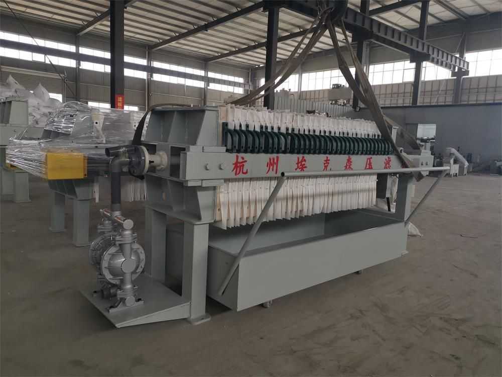 隔膜壓濾機(jī)和常規(guī)箱式壓濾機(jī)的主要區(qū)別在于,在濾板的兩側(cè)都增加了兩個彈性膜(復(fù)合橡膠膜是一個整體式膜。在操作期間,當(dāng)進(jìn)料完成時,將高壓流體介質(zhì)注入膜中,并使整個膜膨脹以過濾濾餅,以進(jìn)一步使濾餅脫水,這是壓力過濾。在隔膜壓濾機(jī)運(yùn)行期間,液壓系統(tǒng)使用液壓油作為壓力載體來傳遞內(nèi)部壓力。
